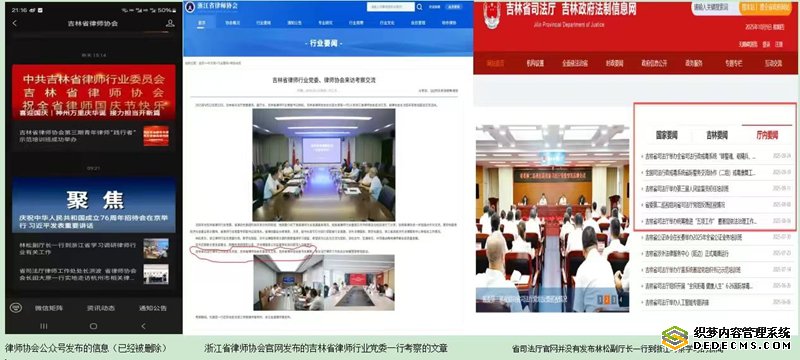 在收到关于田大原涉嫌虚假诉讼等问题的投诉举报后,林松副厅长并未进行正面、实质性的回复,也未依法启动立案调查程序。即便是在互联网舆论持续发酵、风波不断的时期,林松副厅长仍然多次与田大原共同出席各类公开活动,例如:2025年7月25日其主持省律师行业党委会议,田大原参加;9月2日,共同出席吉林省律师行业党建工作培训班;9月6日,与田大原一同带队赴山东烟台调研律师党建工作等等。9月22日专程前往浙江“考察”。这明显可视为“故意展示双方关系正常、意在向外界传递“一切如常、举报无忧”的信号,从而缓解舆论压力。