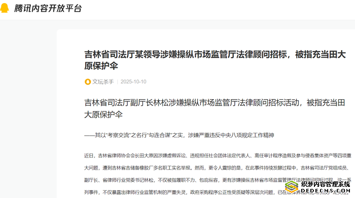 根据最新披露的举报材料与可查证的公开信息,吉林省司法厅副厅长林松被指在吉林省市场监督管理厅法律顾问招标过程中存在严重不当干预行为,具体情节涉及程序公正与利益关联等多重问题,已构成一个完整的疑点链条。